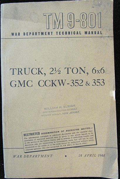 I am wondering, since the 'RESTRICTED' text is more about 'don't give this to people that shouldn't have it' that a TM9-801 WITHOUT the restriction would be an actual 'ON TRUCK' copy while TM9-801's WITH the restriction would be a support issued or a reprint for supply issue. Hence 'plain cover' versions might by more 'valuable' (ie be directly connected to an issued truck) vs 'restricted covers' being general supply items.