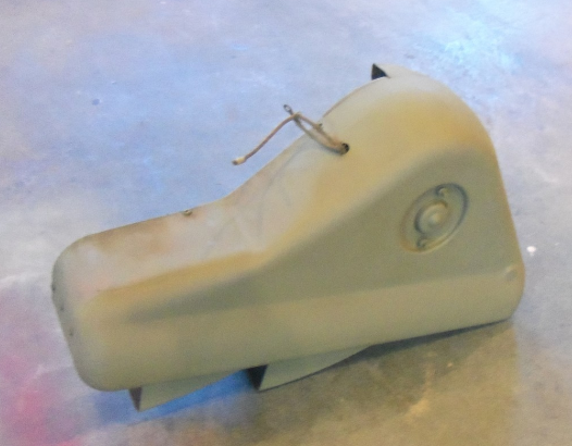 Note in this photo there are two holes punched into the flange, not just one. While the mounting flange, and the location of the mounting studs is the same as the heater in the kit, there is a boss stamped into the right (passengers) side.