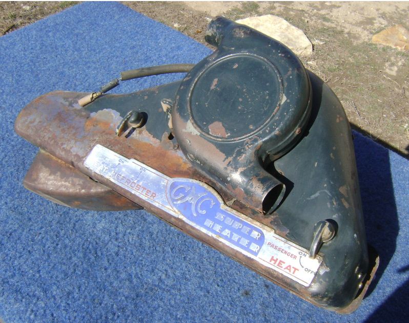 The heater that killed the Military style heater. Defroster, baffeled, smaller. This model would evolve into the later 'fresh air' type heaters