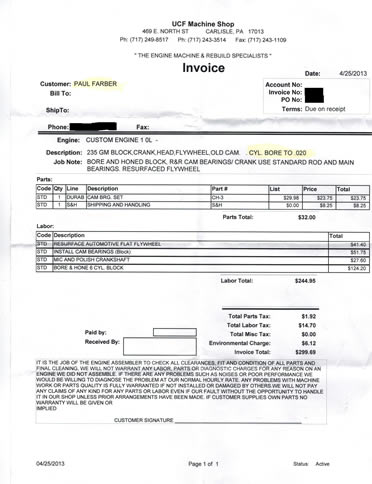 With any luck I'll get out of the machine shop with less than $500 in work.