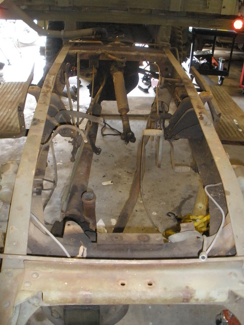 Just about everything forward of the transfer case is out. Bed comes off tomorrow then next week sand blast a thon!