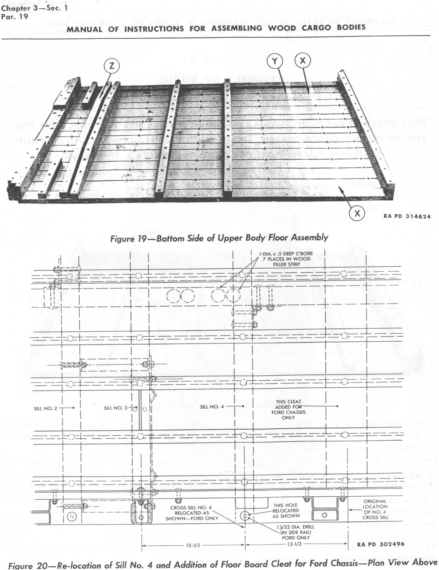 Here is one of the pages of the 'Manual of Instructions for Assembling Wood Cargo Bodies for Export'. Its dated 8/43 (the composite bodies were right around the corner) and it shows SOME of the work required to get a standardized wood body to fit a Ford