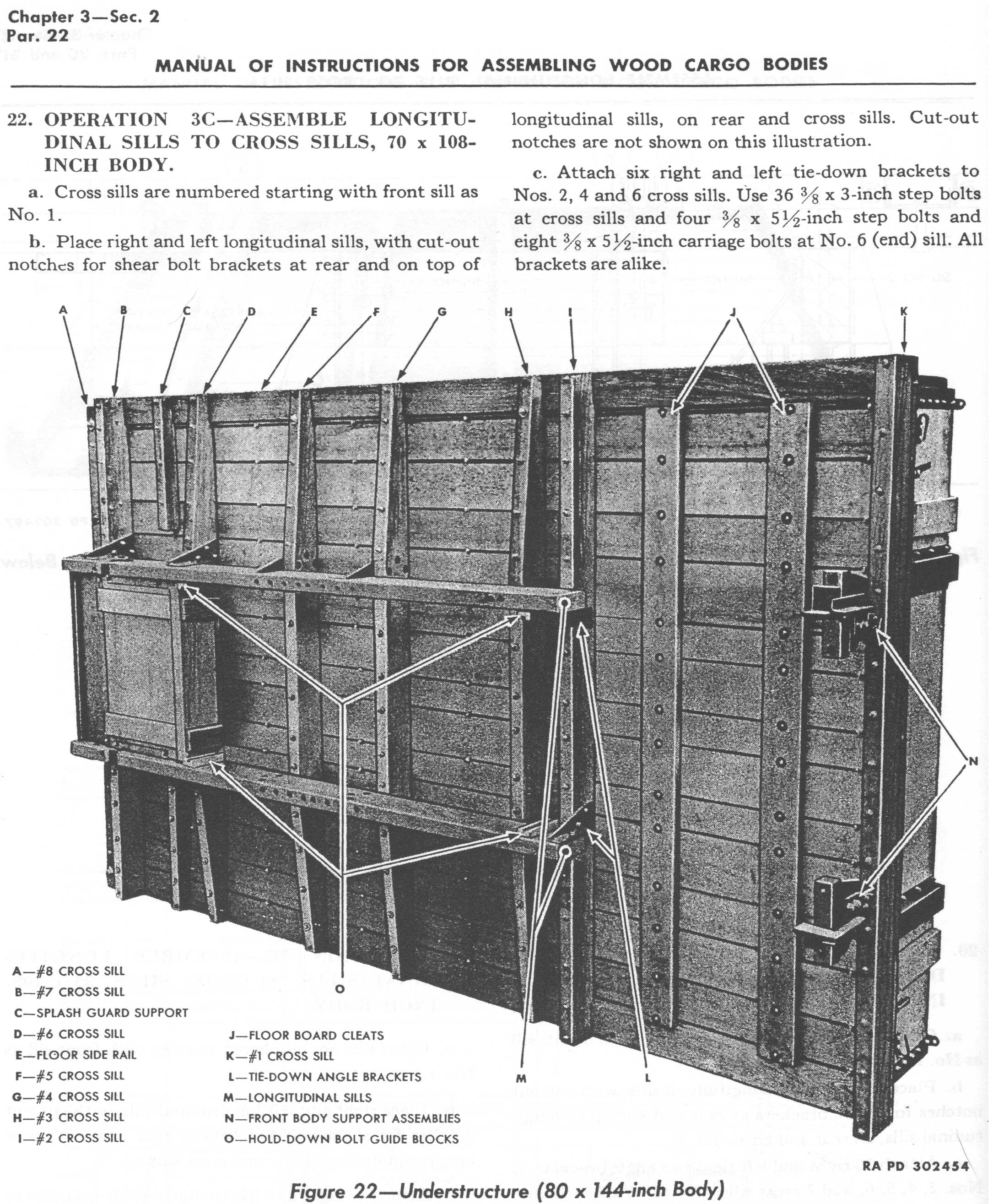 Roughly 100,000 trucks were cargo versions. Would the Army modify the bed to fit such a small number of trucks? It seems like they would just add a paragraph in the assembly instructions to cut the sill if it is to be installed on a Stude/REO. I say this becuase the 8 September 1943 "Manual of Operations for assembling wood cargo bodies packed for export" specifically shows long wheel base wooden bodies modified for ONE specific Ford truck (you have to move a cross sill and reroute some wires).