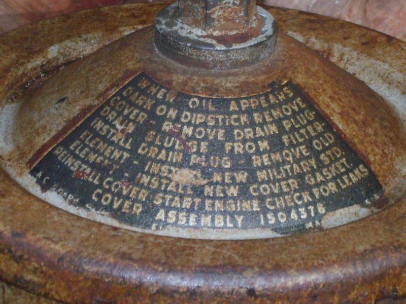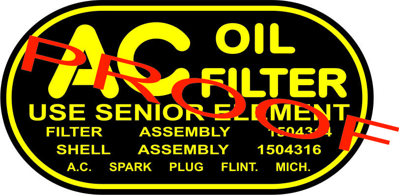 When you ordered the AC oil filter decal, was the decal going to be white lettering on a black oval, or is the white clear? The reason I ask is the attached photo shows my original oil filter (G506, not CCKW), when I stripped off the years of grease and grime. You can see the remains of the AC filter decal, which I believe shares the same layout as yours, but is clearly yellow text and logo on a black oval... Just wondering what my options are for making my decal text yellow. If your text is clear, I can simply put a yellow base coat down first. If the text is white, I'll have to look at other options...