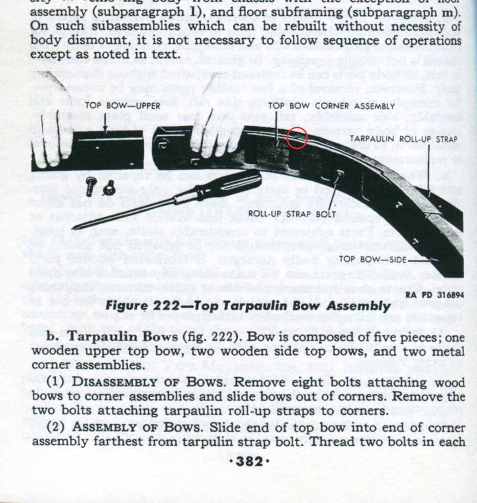 I was installing new oak on my M35A2 and had to disassemble the old bows. That gave me a chance to compare them with cargo bows that I firmly believe that are WWII era/issue CCKW bows.